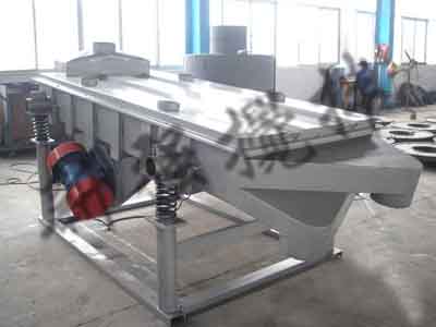 直線振動篩是雙振動電機驅(qū)動。當(dāng)兩臺振動電機做同步、反缶旋轉(zhuǎn)時,其偏心塊所產(chǎn)生的激振力在平行于電機 軸線的方向相互抵消,在垂直于電機軸的方向疊為一合力,因此篩機的運動軌跡為一直線。兩電機軸相對篩面有一 傾角,在激振力和物料自重力的合力作用下,物料在篩面上被拋起跳躍式向前作直線運動,從而達到對物料進行 篩選和分級的目的。適用于粒度在0.074-5mm、含水量小于70%、無粘性的各種干式粉狀物料的篩分。大給料粒 度不大于10mm。